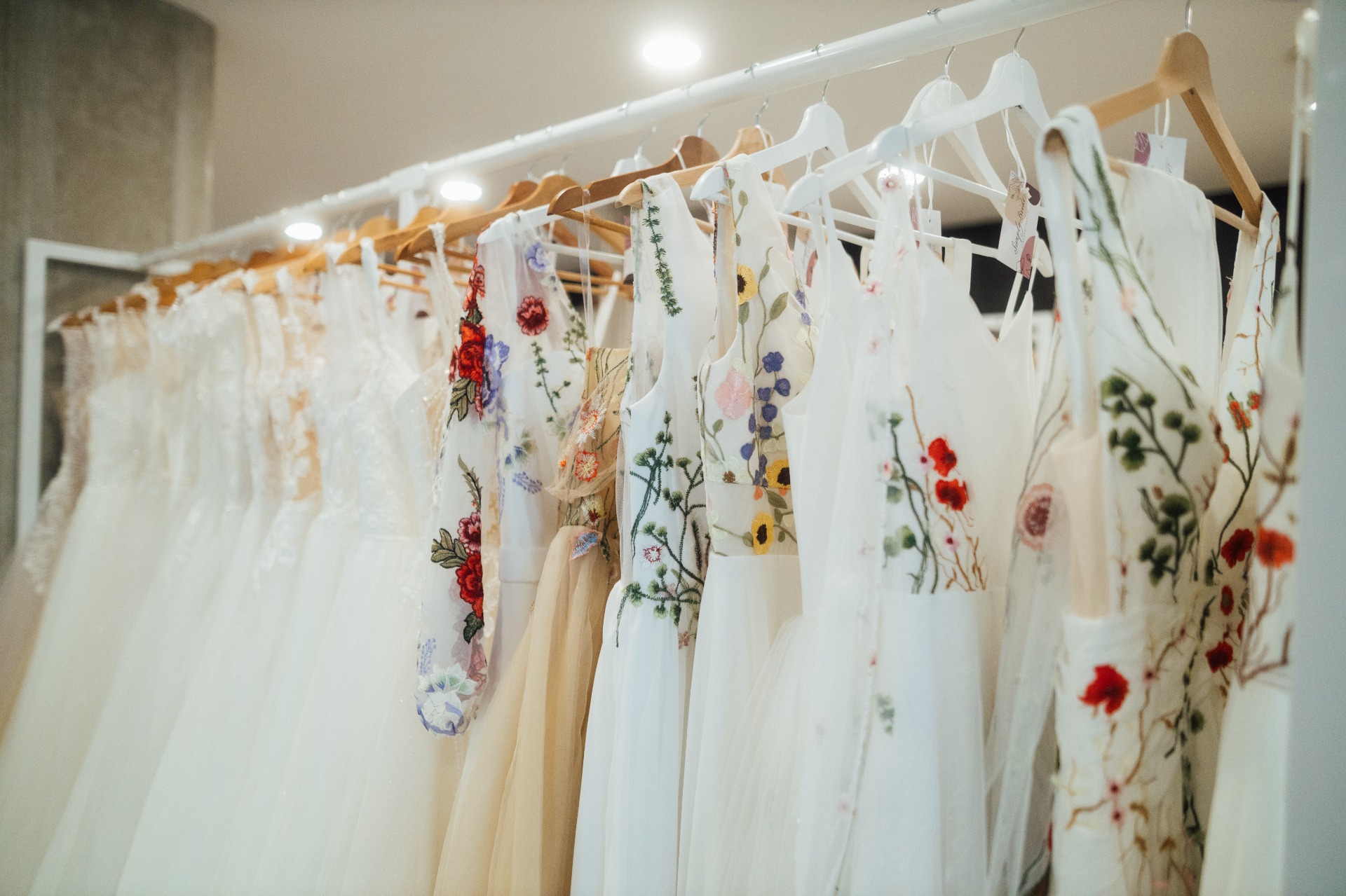Velkou předností jsou naše svatební šaty s barevnou květinovou výšivkou, pro které jezdí nevěsty z celé republiky.