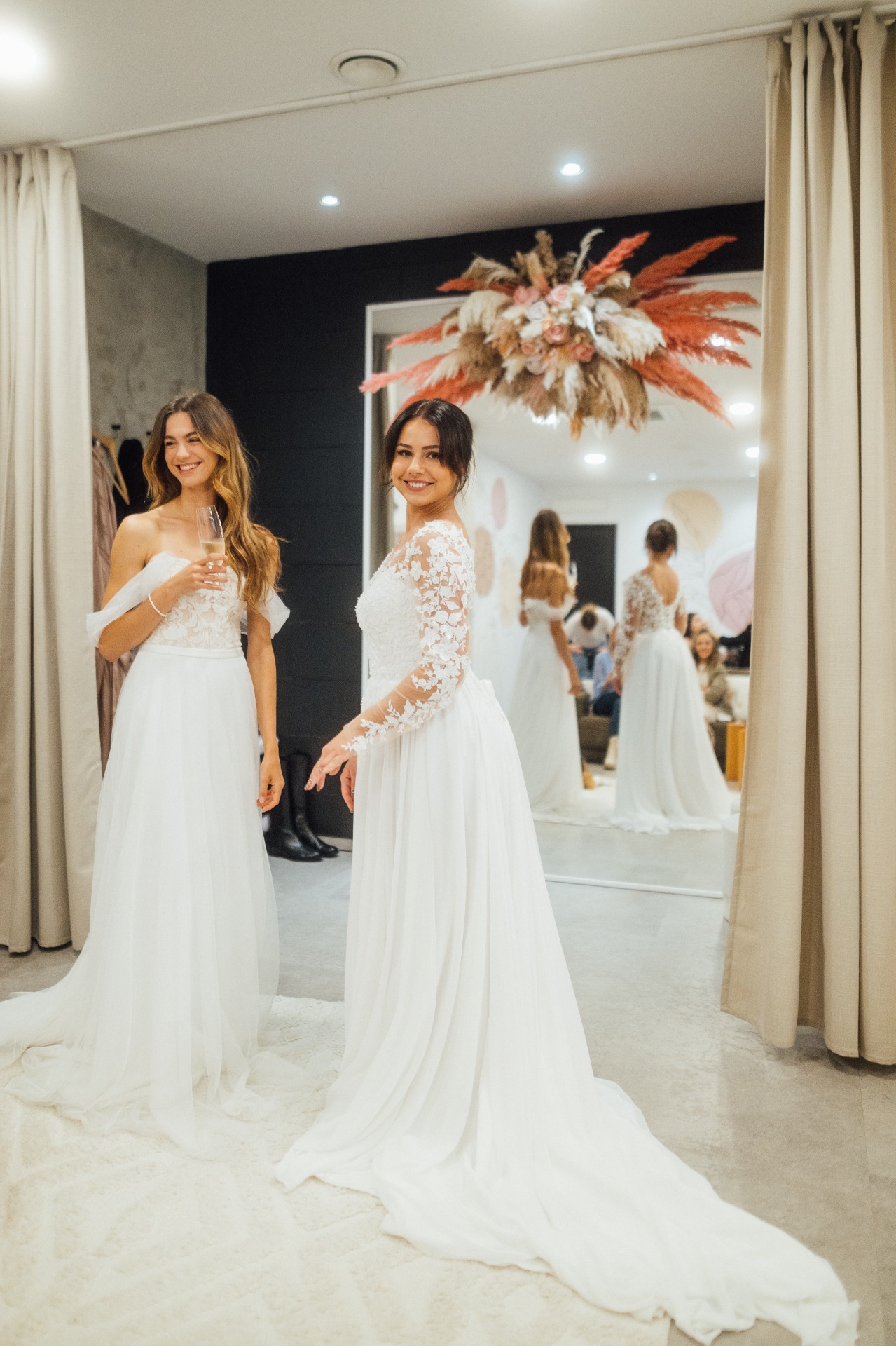 Snažíme se, ke každé z vás přistupovat jedinečně, přátelsky, osobitě, abyste se u nás cítila hlavně jako princezna a celý čas zkoušení svatebních šatů si maximálně užila !